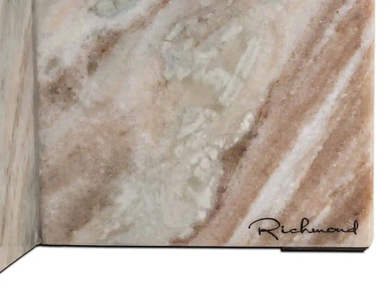 De Vevey Pink bijzettafel van Richmond Interiors is gemaakt van stevig Toronto-marmer, met een zachte roze tint en afgeronde vormen. Perfect als elegant accent in je woonkamer of slaapkamer.