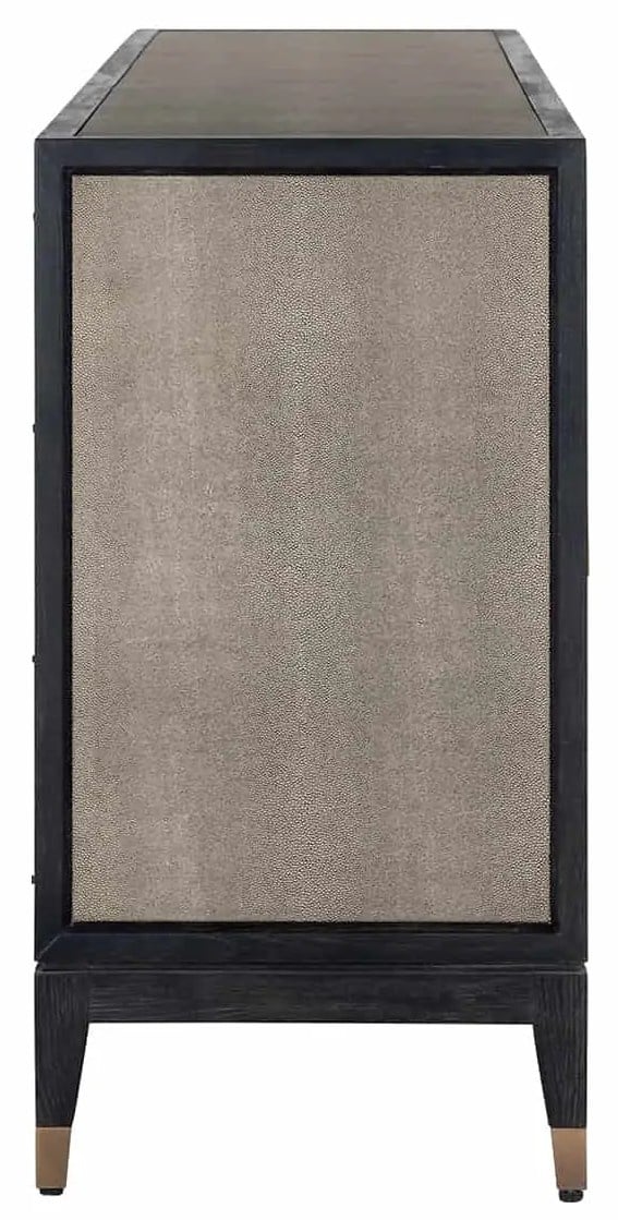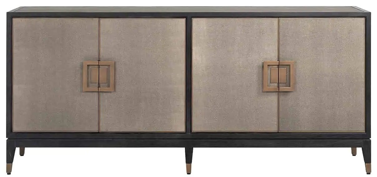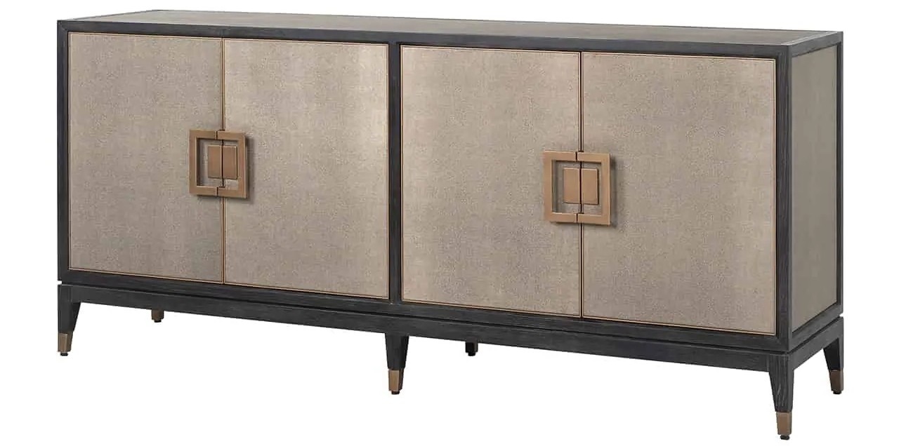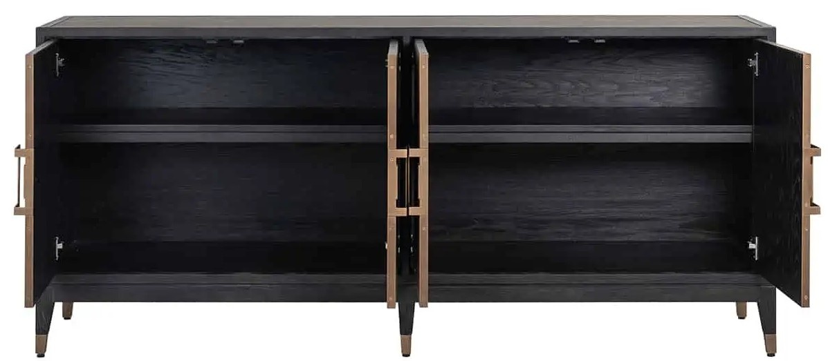 Het dressoir is vervaardigd uit duurzame materialen met een luxe gouden afwerking, die zorgt voor een stijlvolle glans en langdurige kwaliteit kenmerkend voor de elegantie van Richmond Interiors.