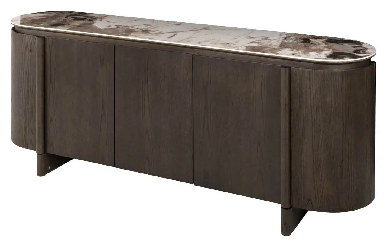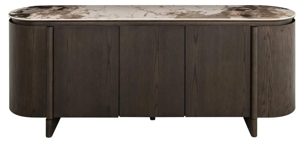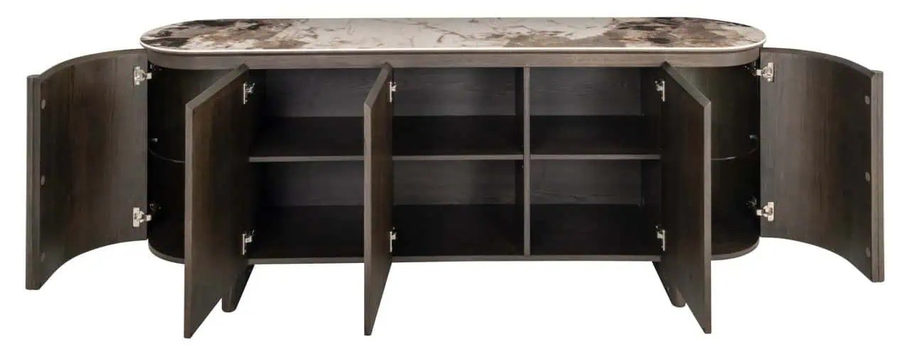 Het dressoir is vervaardigd uit hoogwaardige materialen met een warme brown afwerking, wat zorgt voor een luxe uitstraling en langdurige kwaliteit.