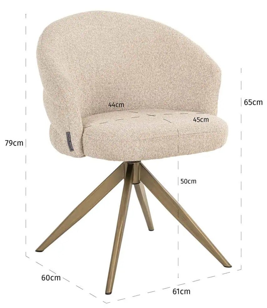 De Zendaya eetkamerstoel van Richmond Interiors combineert stijl, comfort en functionaliteit in één luxe stoel. De stoel is bekleed met biscott stof en beschikt over een draaibare (swivel) zitting, waardoor hij zowel stijlvol als praktisch is in gebruik.