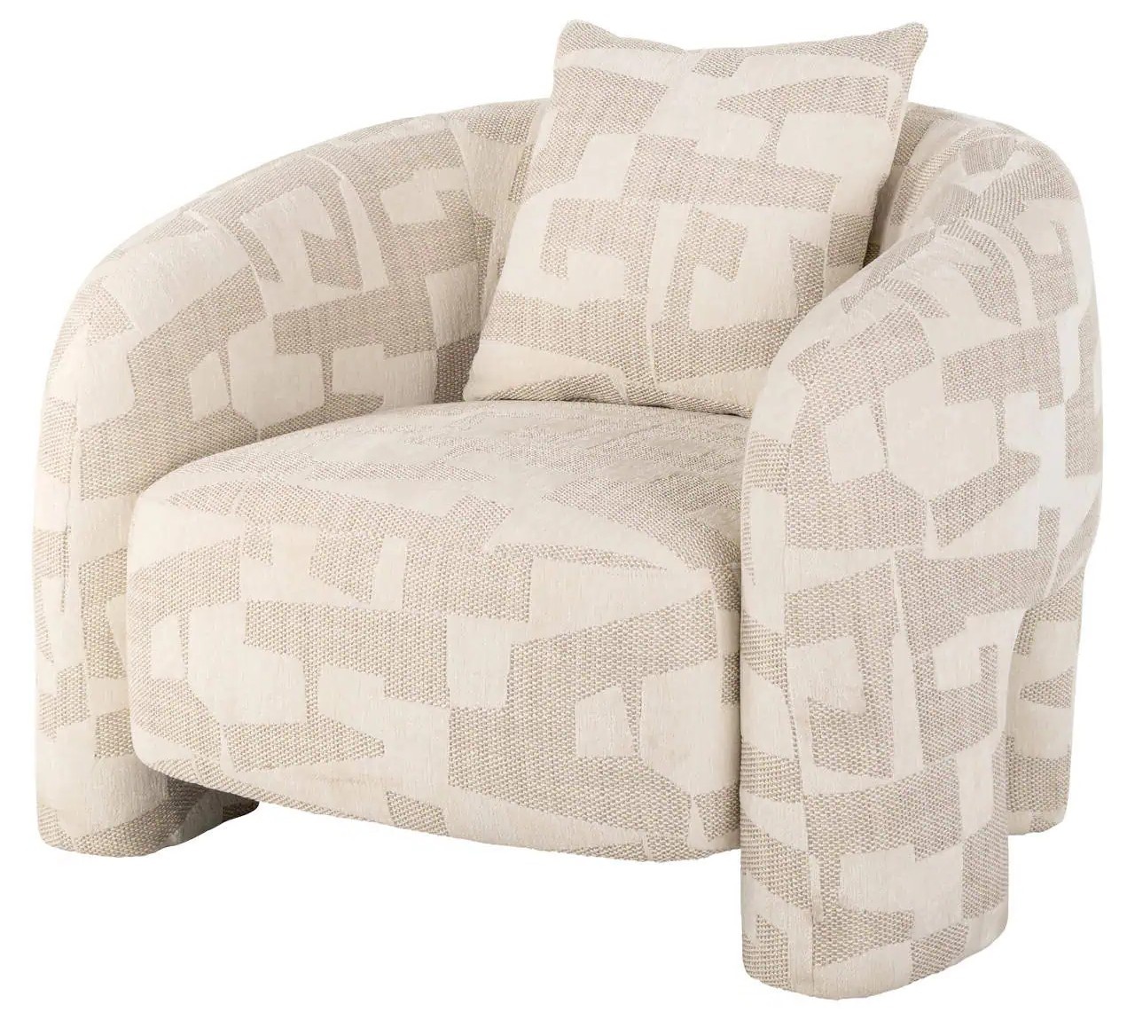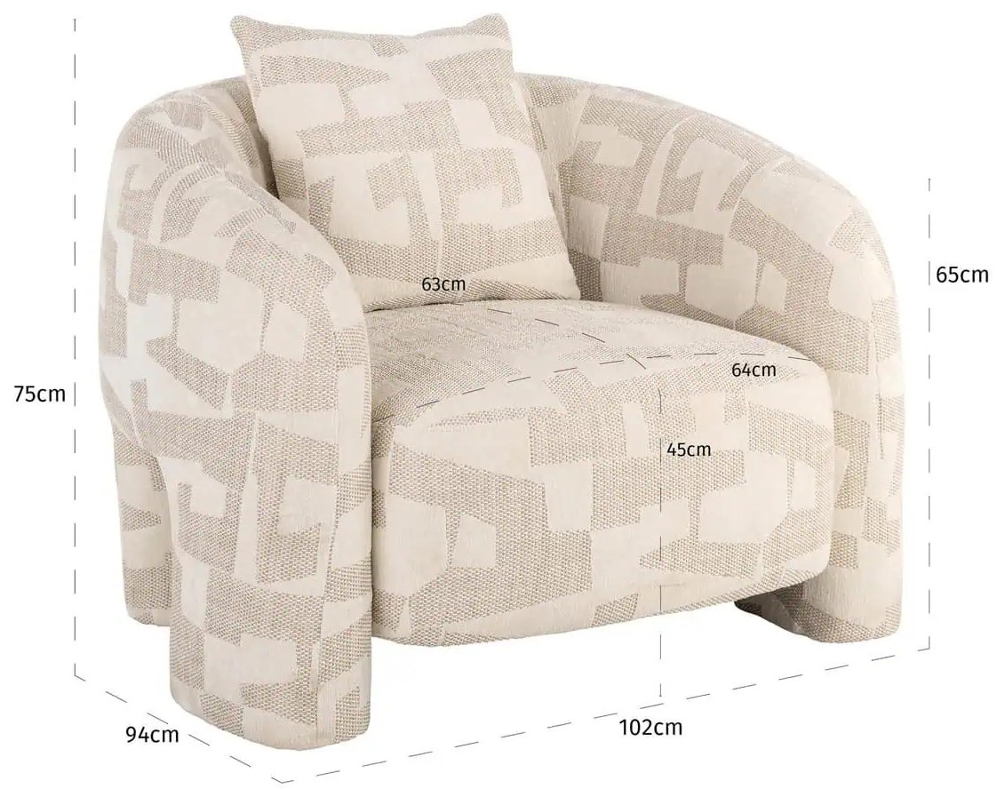 De Tuscany lounge stoel van Richmond Interiors in beige graffic biedt modern design en ultiem comfort. De zachte bekleding en elegante ronde vormen maken deze stoel een stijlvolle toevoeging aan elke woonkamer of loungehoek.