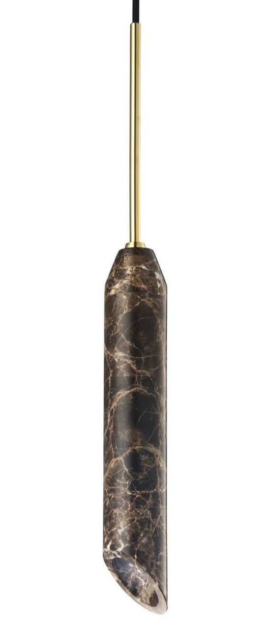 De Marble Art pendellamp is een verfijnde downlight van gepolijst marmer met elegante gouden of zwarte details. Elk stuk is uniek en voegt stijlvolle sfeer toe aan keuken, eettafel of hoekje.