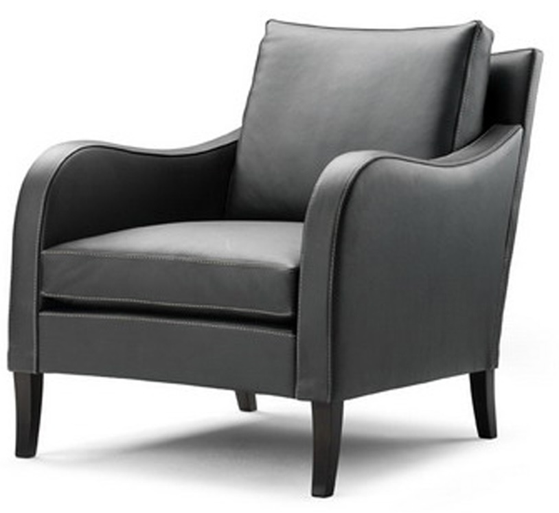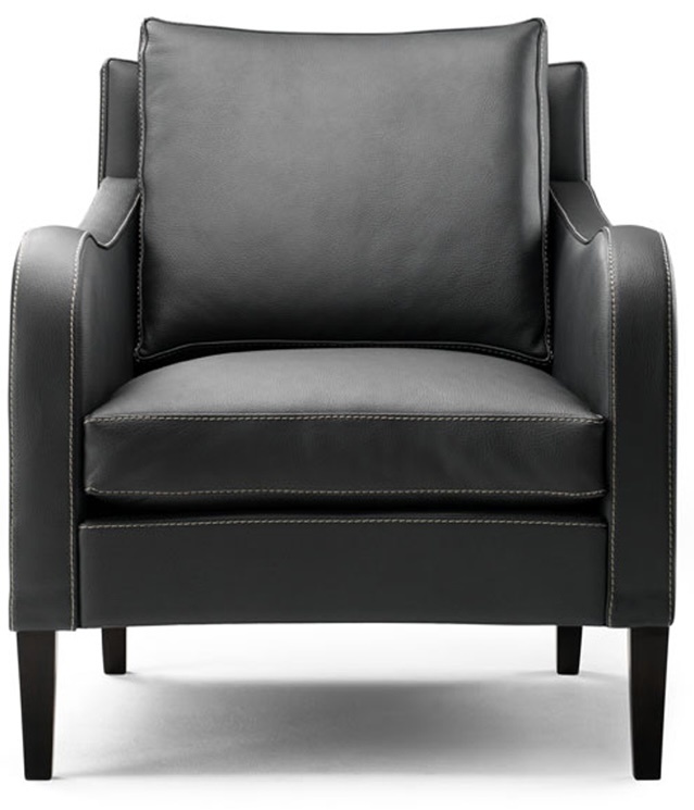 Deze fauteuil onderscheidt zich door zijn rondere vormen ten opzichte van de Labda en elegante, sierlijk gebogen poten van beukenhout. De smalle armleuningen en het zitkussen zijn afgewerkt met decoratieve stiknaden in de flat-fell naad. Het losse en veerkrachtige rugkussen zorgt voor een hoog zitcomfort en een uitnodigende zitervaring.