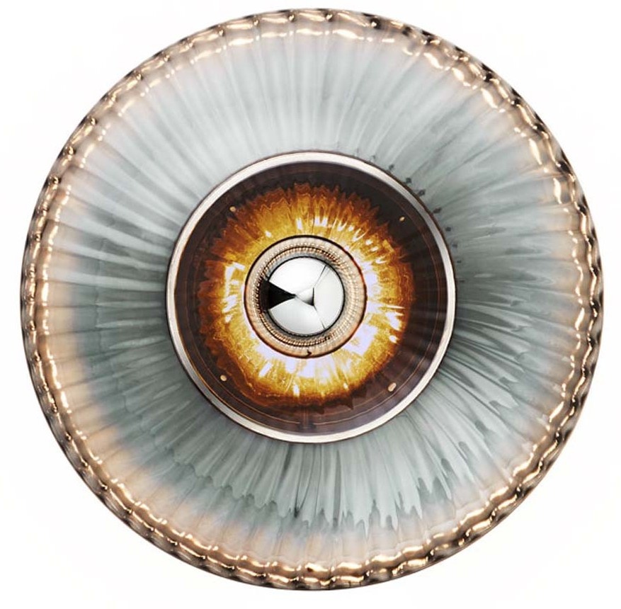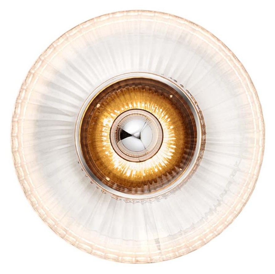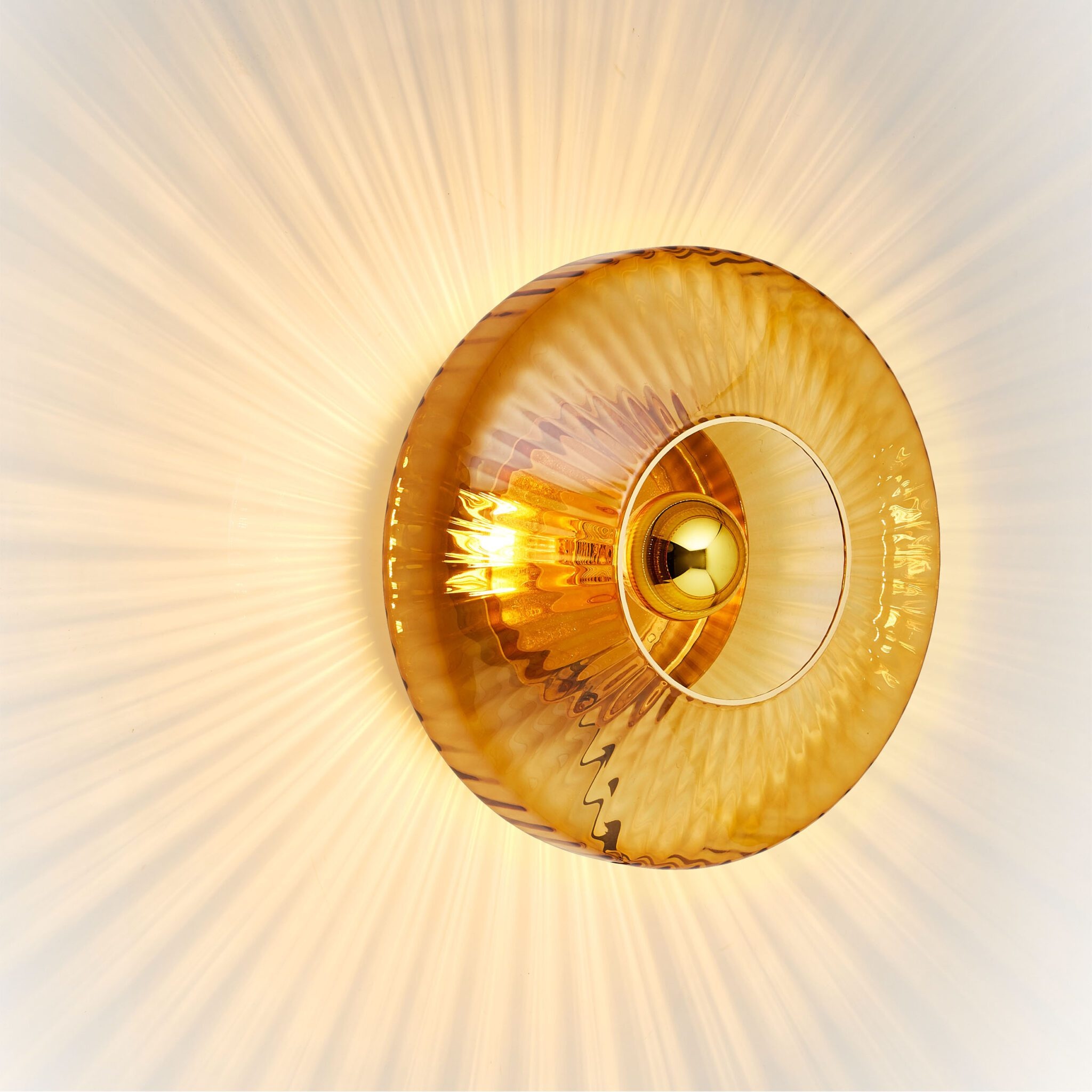 De New Wave Wall lamp XL is een iconische wand- en plafondlamp die een prachtig golvend lichtpatroon op de muur werpt, anders dan elke andere decoratieve lamp. Het handgeblazen golvend glas is afgewerkt met een zilveren of gouden rand, die afhankelijk van het model een elegante touch toevoegt. Voor een intensiever effect kan de lamp worden gecombineerd met de Eyeball accessoire. De lamp is geschikt voor wand- en plafondmontage en wordt geleverd met een 2 meter lange zwarte textielkabel met schakelaar. Aanbevolen lichtbronnen zijn Ø80 kroonlampen in goud voor de Rose & Amber varianten en zilver voor de Smoke & Clear varianten. Houd rekening met mogelijke luchtbelletjes tot 0,5 cm in het glas, wat een uniek kenmerk is van het handgeblazen materiaal.