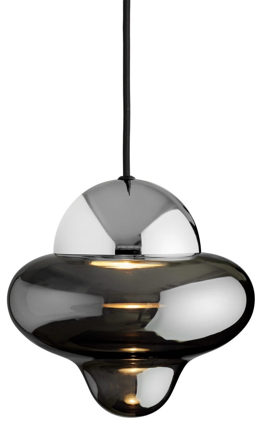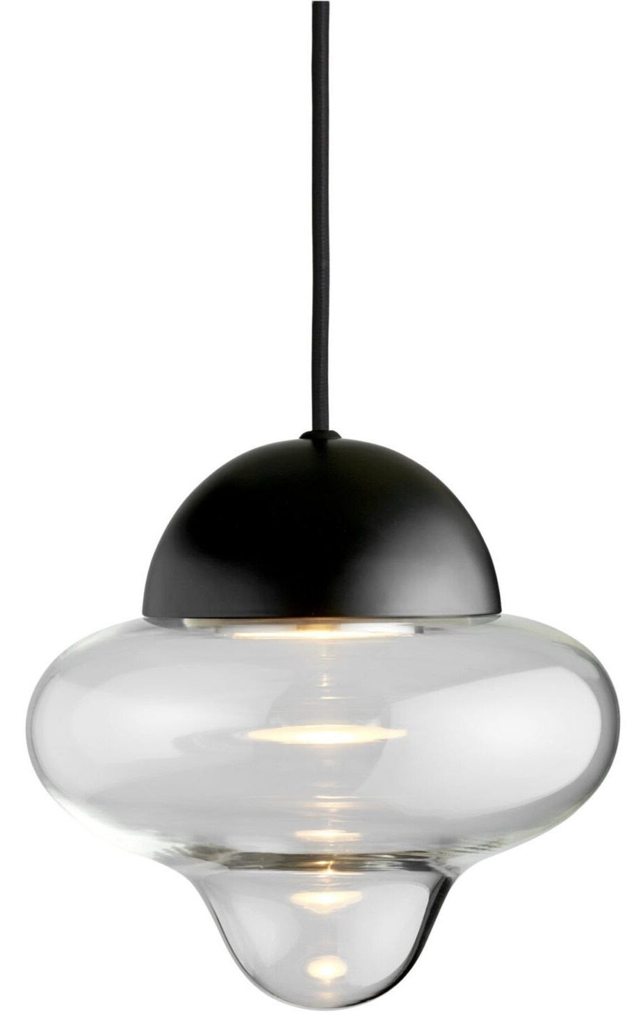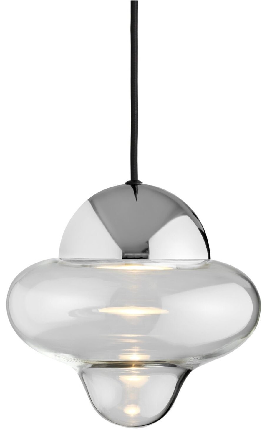 Materiaal: Mondgeblazen glas, geïntegreerde LED, gecoat metaal en textielkabel