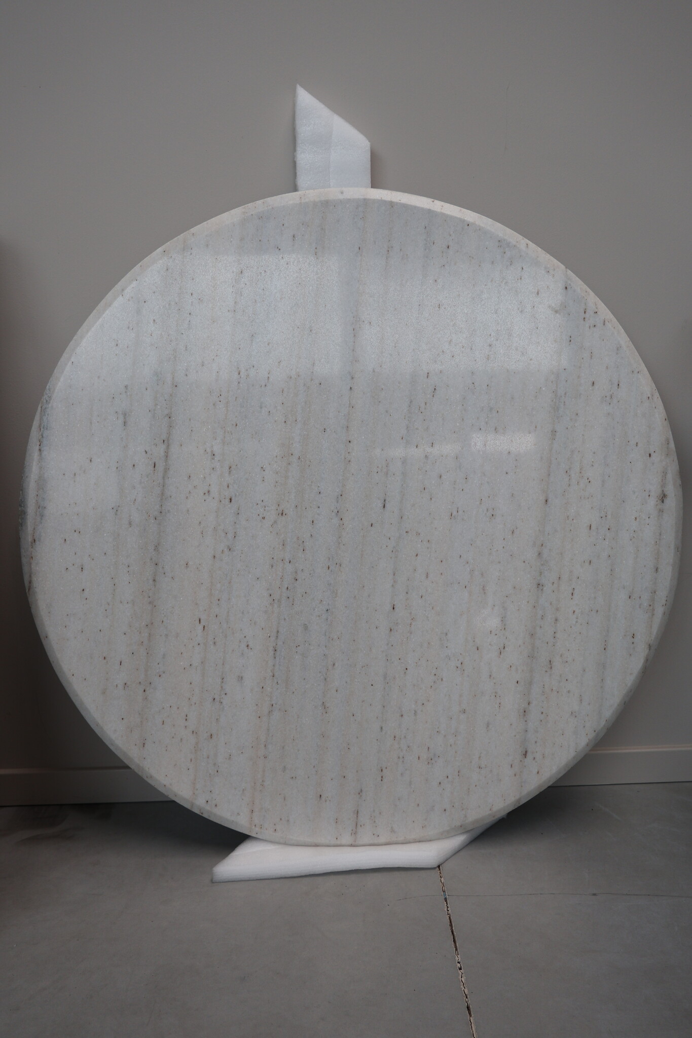 Het marmeren tafelblad met facetrand en een diameter van 90 cm is een stijlvol en functioneel meubelaccessoire dat los gebruikt kan worden met een eigen onderstel. Het duurzame marmer met facetrand combineert elegantie en luxe met praktische eigenschappen, waardoor het een perfecte basis vormt voor een tafel naar eigen ontwerp.